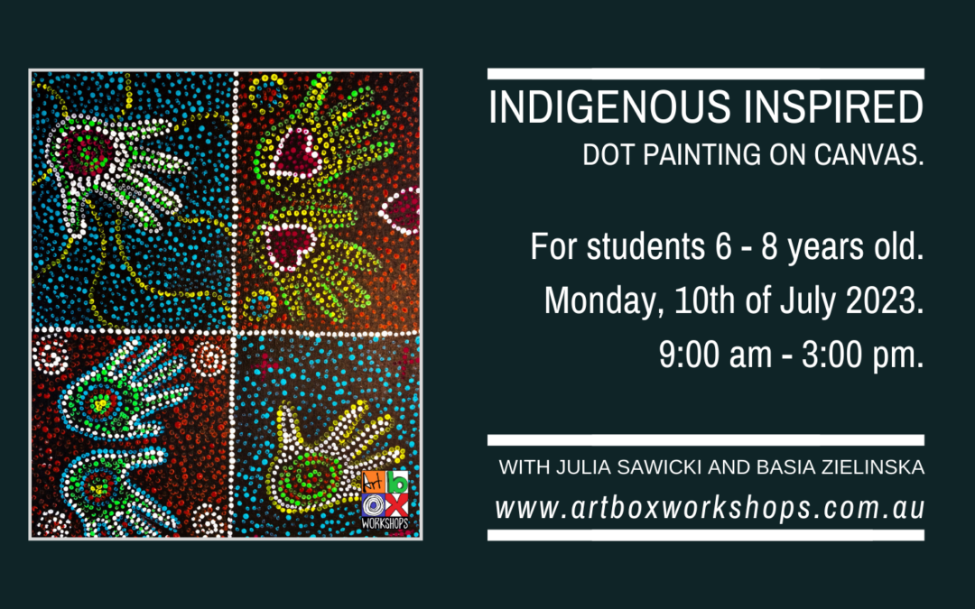 Indigenous inspired dot painting by kids at Art Box Workshops
