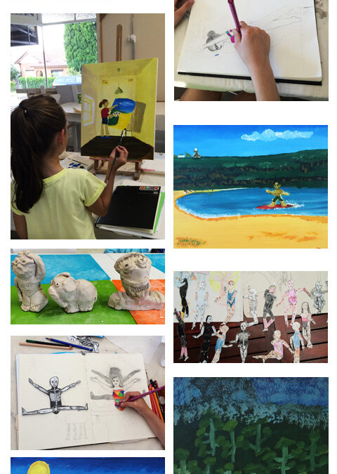students painting